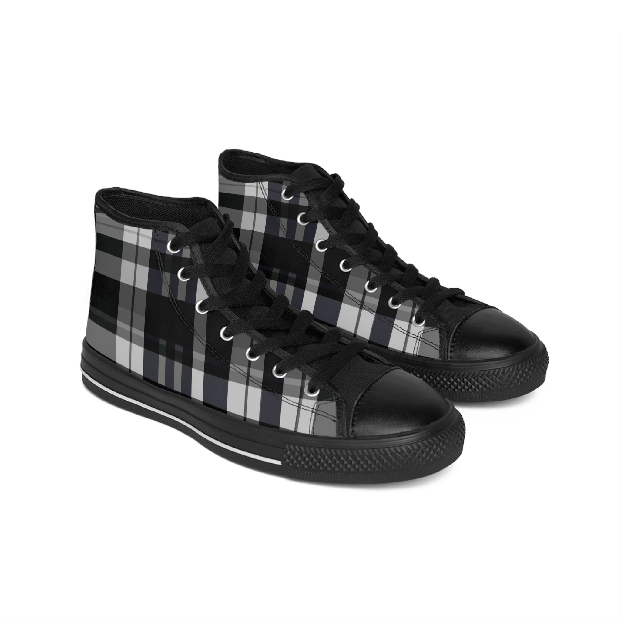 Introducing the Cairdurgh High Tops from Plaid Studio's NFP (non-fungible product) collection, where each piece is a made-to-order, limited edition of 1. From our Plaid Remix Collection, this unique design is a contemporary take on traditional Scottish tartan patterns, and will only ever be produced once, just for you. Experience the joy of owning completely unique footwear and become a connoisseur of wearable art! #1of1 #DesignerKicks #HighTops #TartanDesign #BlackandGrey #DigitalArt #ShoeFantasy #FootFashion #FreshKicks #LimitedEdition