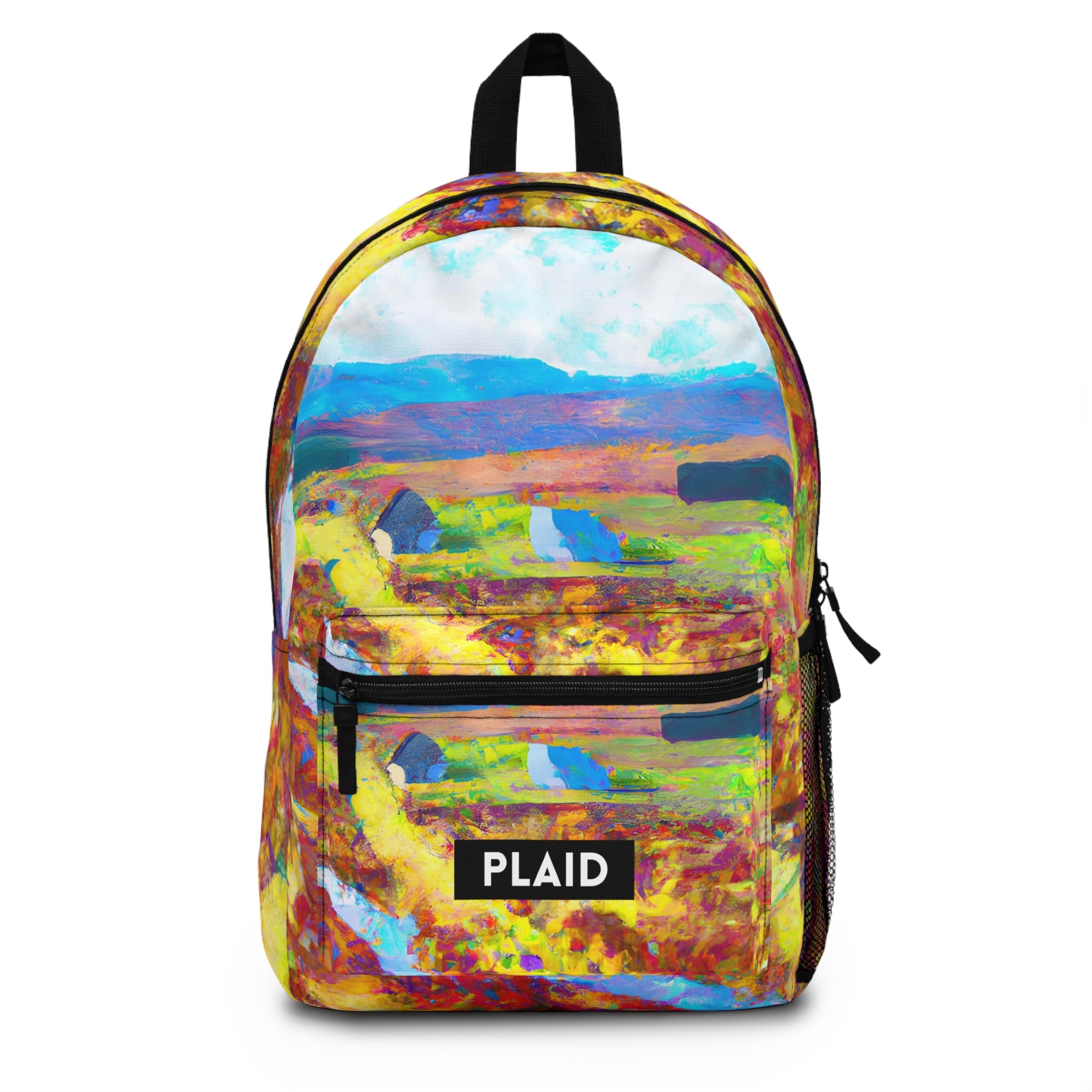 This handmade, unique backpack is the perfect combination of fashion and travel - an original Peter Blake design featuring a trippy digital art painting of glorious Scottish landscapes. Crafted from high-quality materials, this one-of-a-kind bag is perfect for your Highland adventure. #PlaidStudio #ScottishFashion #TartanStyle #BespokeFashion #HighlandInspired #TartanLove #ScottishDesign #PlaidFashion #Plaidbackpack #Tartanbag #ScottishTravelBag #Bespokebackpack #WeekenderBag #HighlandAdventure #TravelInStyle #ScottishLuggage #uniquetravelbag #designeraccessories